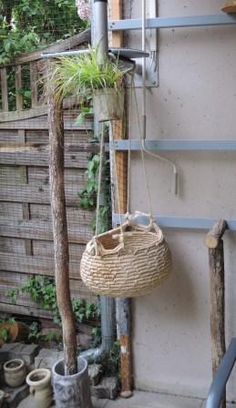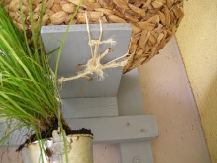 Das Körbchen war ein Glücksfund meiner Mutter. Das hatte jemand doch tatsächlich weggeworfen. Gut für uns, wir konnten es gebrauchen. Befestigt ist es ganz einfach mit Sisalseil. Das habe ich übrigens nicht extra gekauft, sondern von einem ausgedienten Kratzbaumstamm genommen.